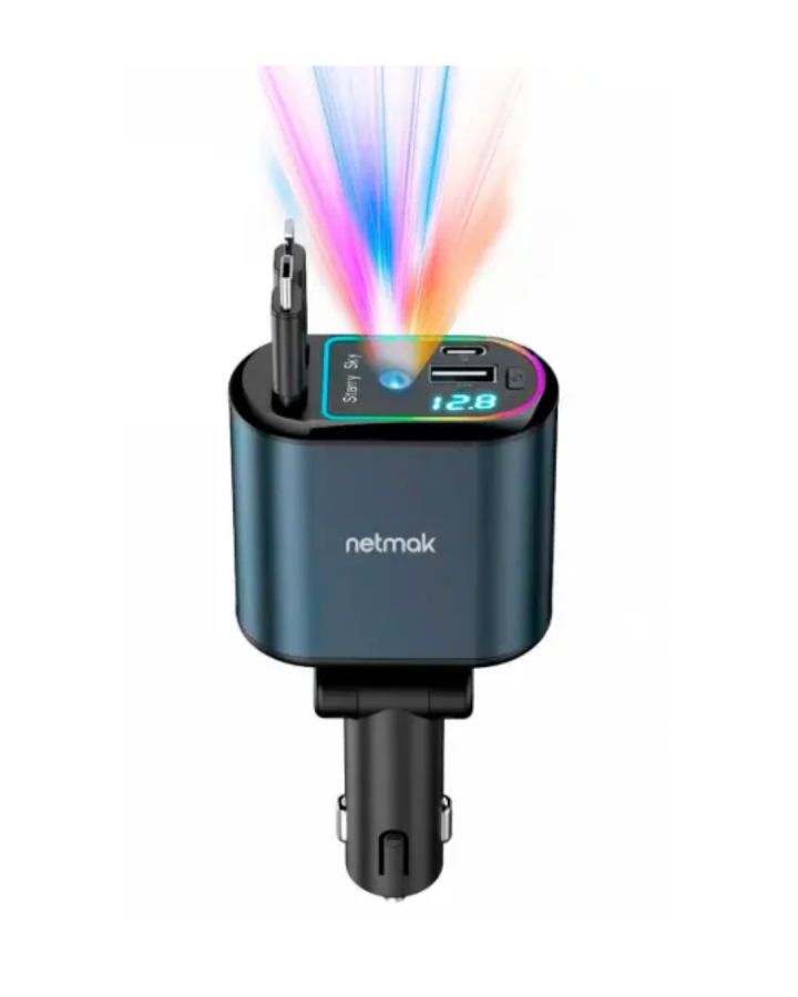 Carga hasta 4 dispositivos de forma simultánea con potencia de hasta 66W, incluyendo dos cables retráctiles (USB-C y Lightning) y doble puerto (USB-C y USB).