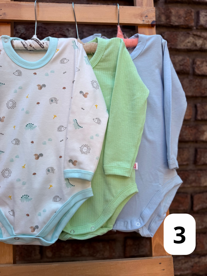 Este increíble pack de 3 bodys es la elección perfecta para mantener a tu peque cómodo y acogedor. Diseñados con materiales de alta calidad, nuestros Bodys son suaves al tacto y transpirables, ideales para la delicada piel de tu pequeño.