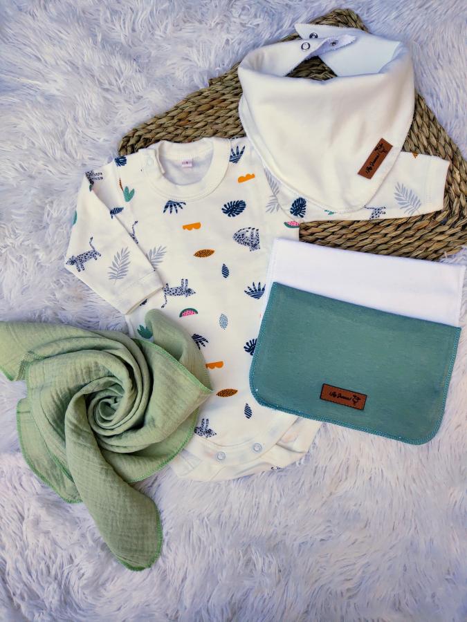 - Body de algodón (puede ser manga larga, manga corta o polera)