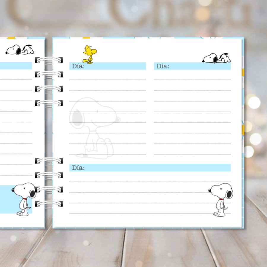 Incluye 80 hojas a color con diseño inspirado en Snoopy, impresas en formato diario perpetuo, lo que te permite completar manualmente la fecha y usar solo las hojas que necesites, sin desperdiciar páginas. Es perfecta para comenzar en cualquier momento del año y adaptarse a tu ritmo personal.
