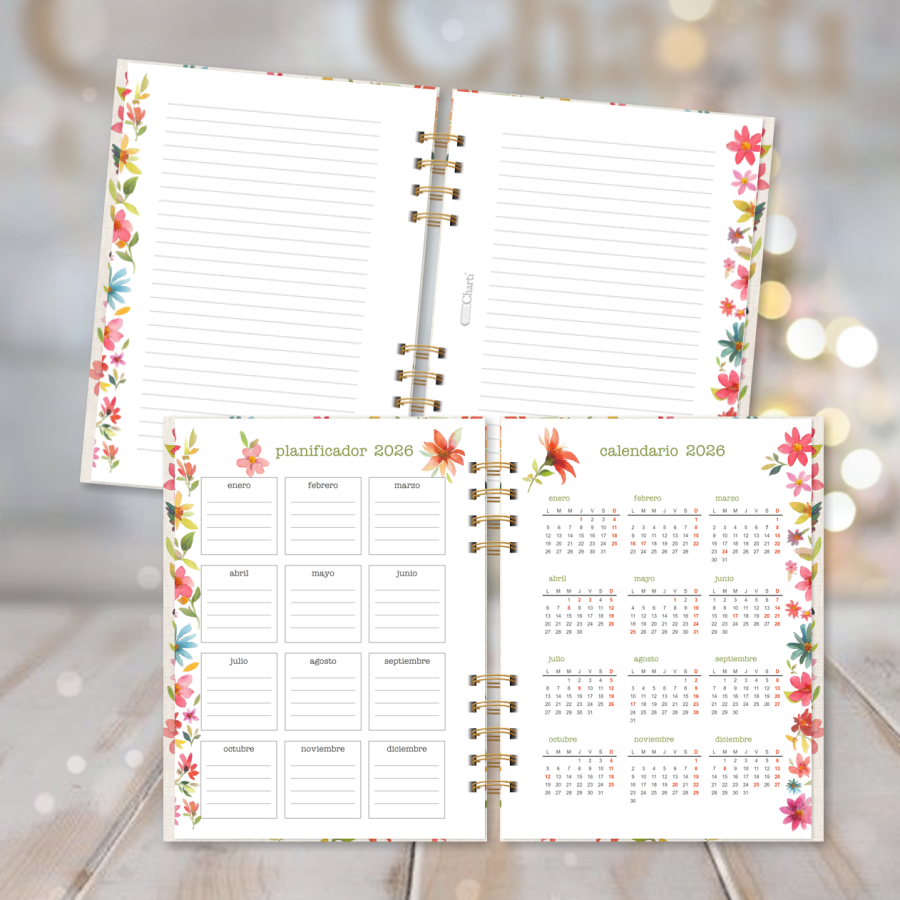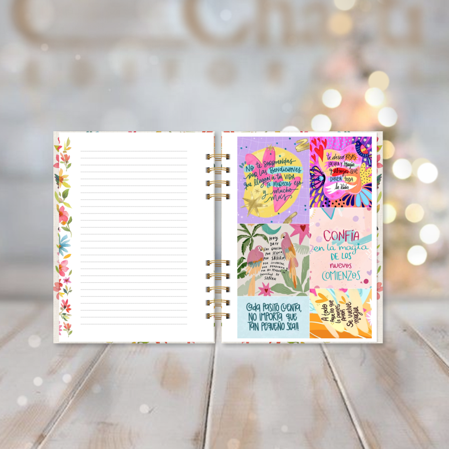 Esta versión básica de la agenda más colorida del catálogo: tiene tarjetas, anillado metálico y tapas duras con dorado, laminadas!