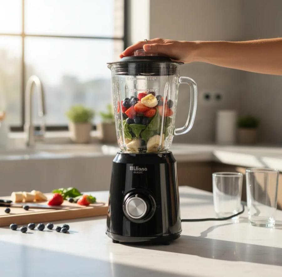 Licuadora Liliana Glasslic, ideal para preparar licuados, jugos, batidos, salsas y distintas recetas de manera rápida y sencilla. Su jarra de vidrio de 1,5 litros ofrece mayor resistencia y durabilidad para el uso diario.