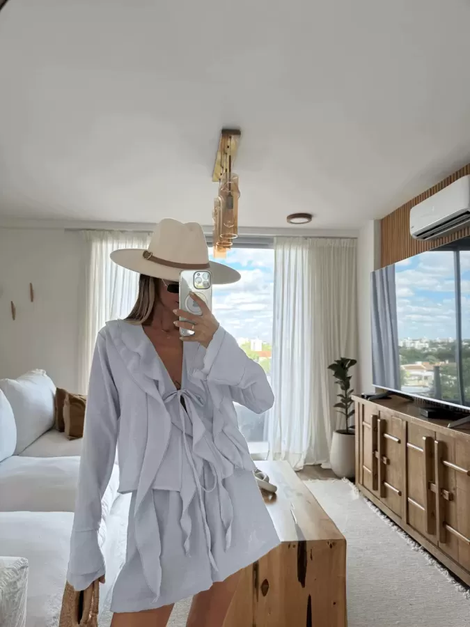 -Medidas en centímetros aproximadas, con prenda extendida sobre mesa.