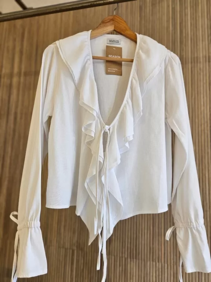 -Medidas en centímetros aproximadas, con prenda extendida sobre mesa.