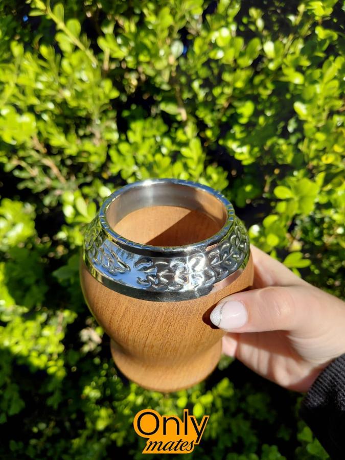 Material de algarrobo, acabado mate natural. Virola de alpaca cincelada.