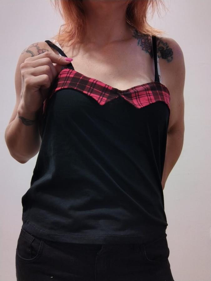Musculosa de algodón, con solapas escocesas y bretel tirita. UNICA EN STOCK XL