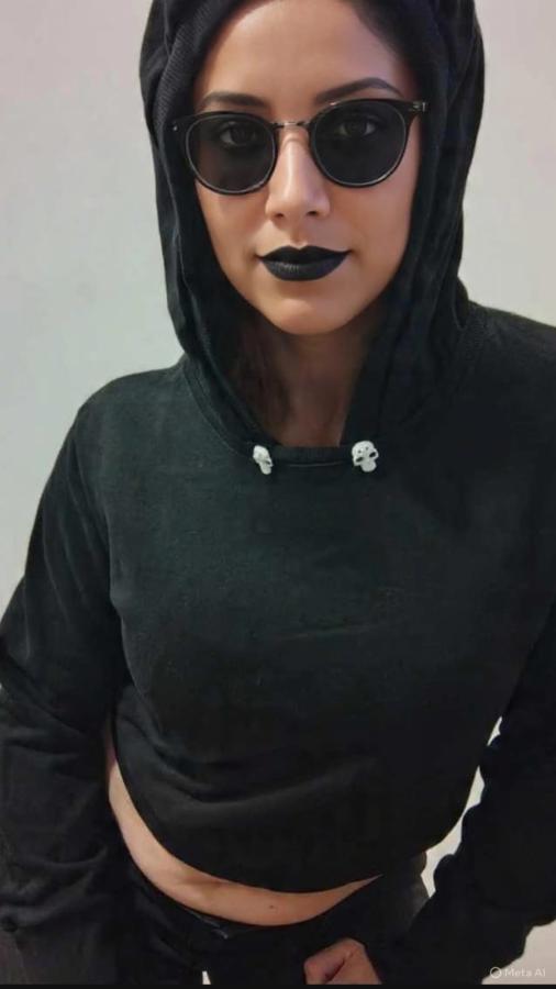TALLE M Buzo corto con capucha y botones 3D de calaveras.