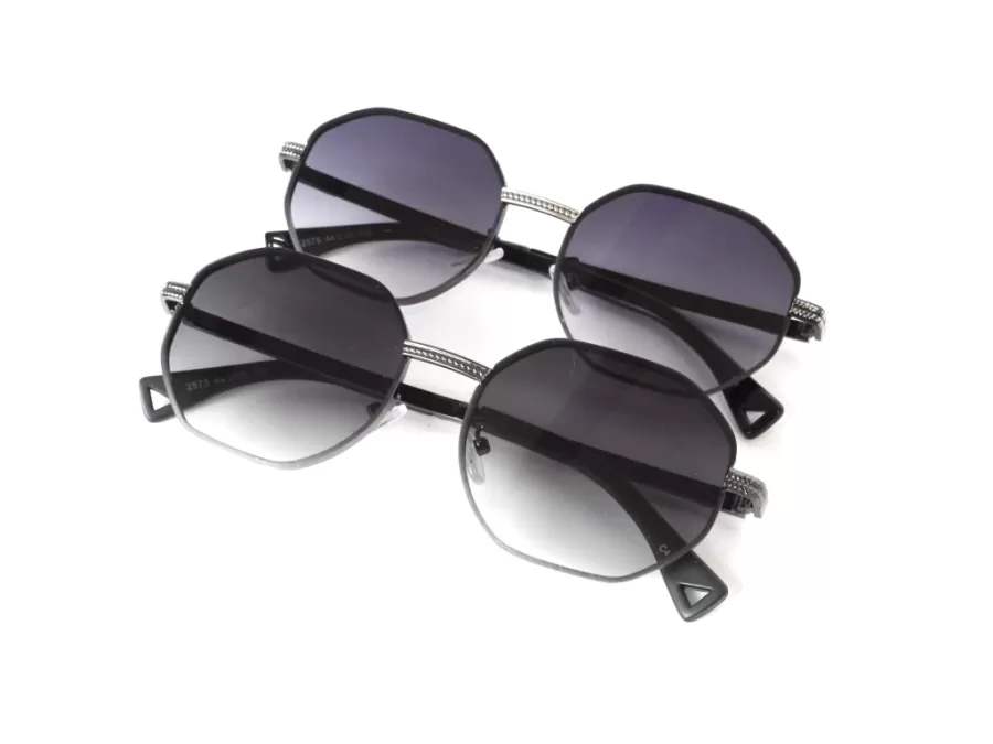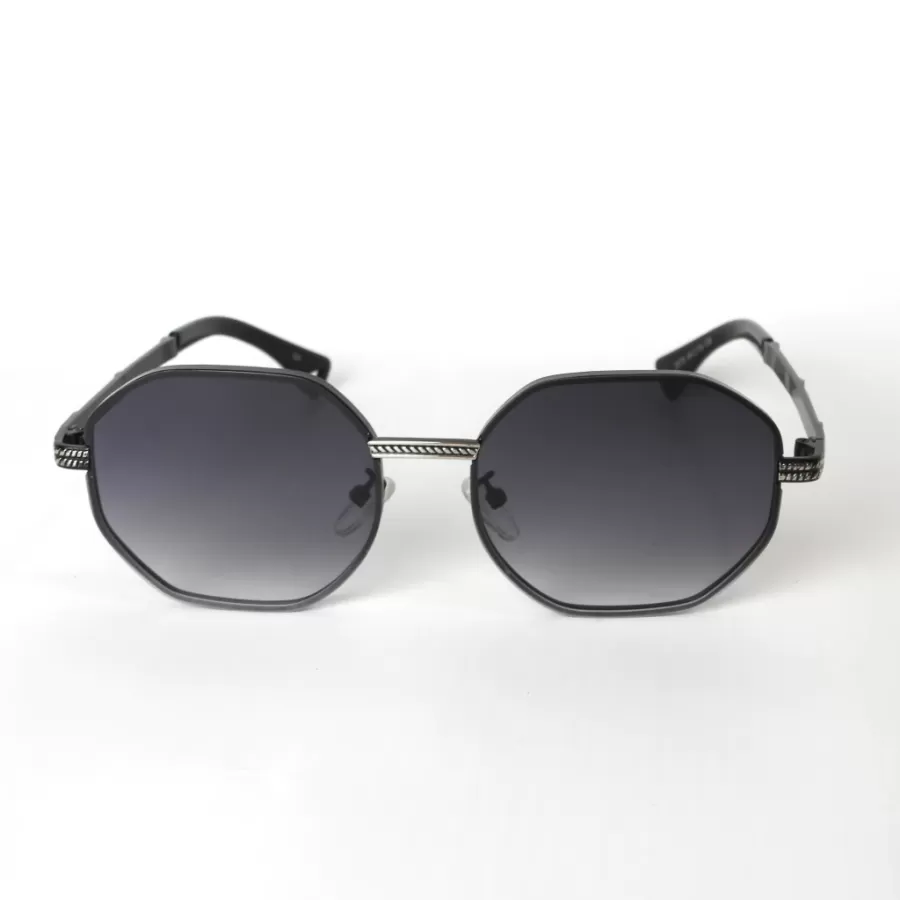 Estos lentes de sol destacan por su diseño octogonal único, que combina modernidad y estilo retro en una sola pieza. Su armazón metálico negro con detalles en las patillas aporta resistencia y elegancia, mientras que los cristales degradados en tono gris ofrecen una protección eficaz contra los rayos solares, brindando comodidad visual en todo momento.