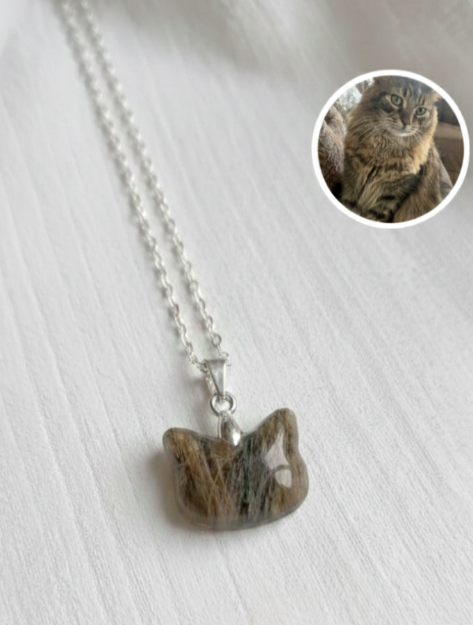 Este modelo con silueta de gatito permite encapsular el pelaje real de tu mascota, creando un efecto visual orgánico y delicado que preserva su textura y color original para siempre. Es el homenaje perfecto para celebrar su compañía o para mantener cerca a ese amigo.