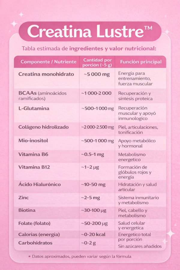 Lustre Creatine es un tratamiento corporal formulado especialmente para mujeres, enriquecido con creatina, que ayuda a mejorar la firmeza, tonicidad y apariencia de los glúteos. Su uso regular contribuye a estimular la piel, mejorar la elasticidad y brindar una apariencia más firme y definida, acompañando rutinas corporales y de cuidado diario.